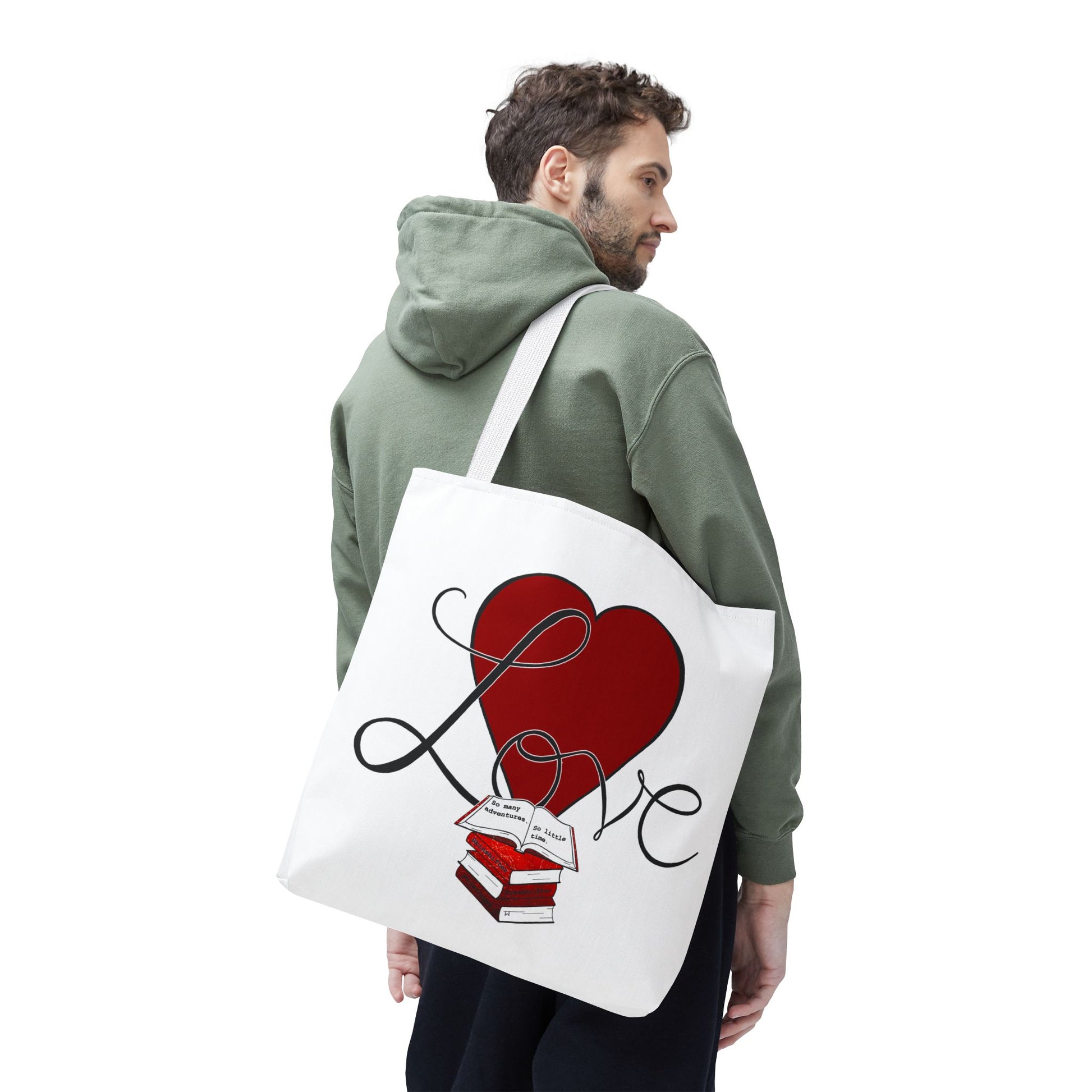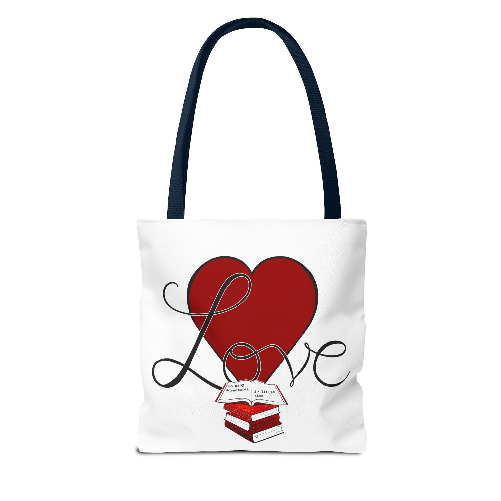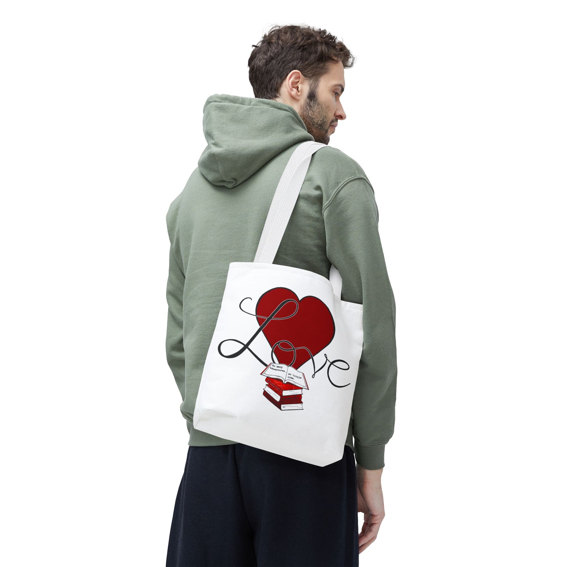 These multi-function tote bags feature the "Book Love" design perfect for any book lover.
