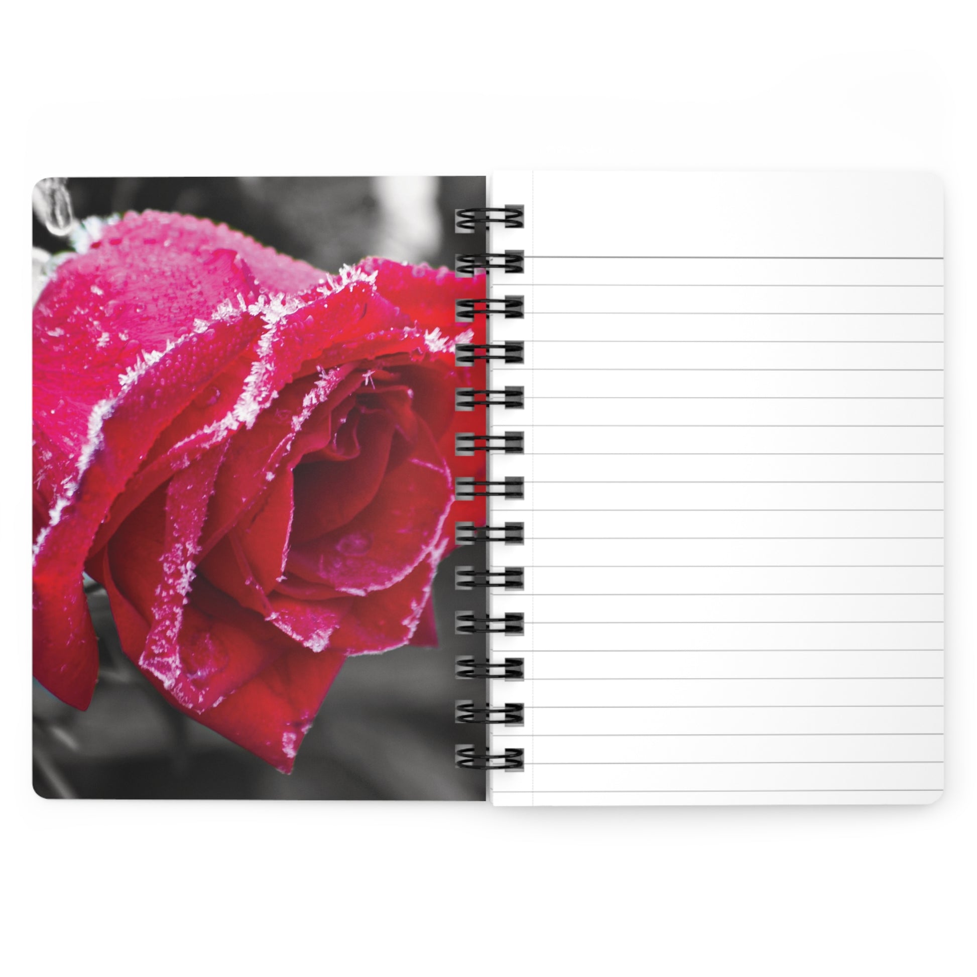 Write down your dreams and musings in style using this sturdy spiral-bound notebook. This special notebook features a thick gloss full-color laminated protective cover that is much more durable than the average flimsy paper covers. The journal comes in 5x7" size with 150 pages of lined paper and features the "Growth in Christ Heart", and "Kiss of Red Frost" book cover designs on its front, back, and inside covers.