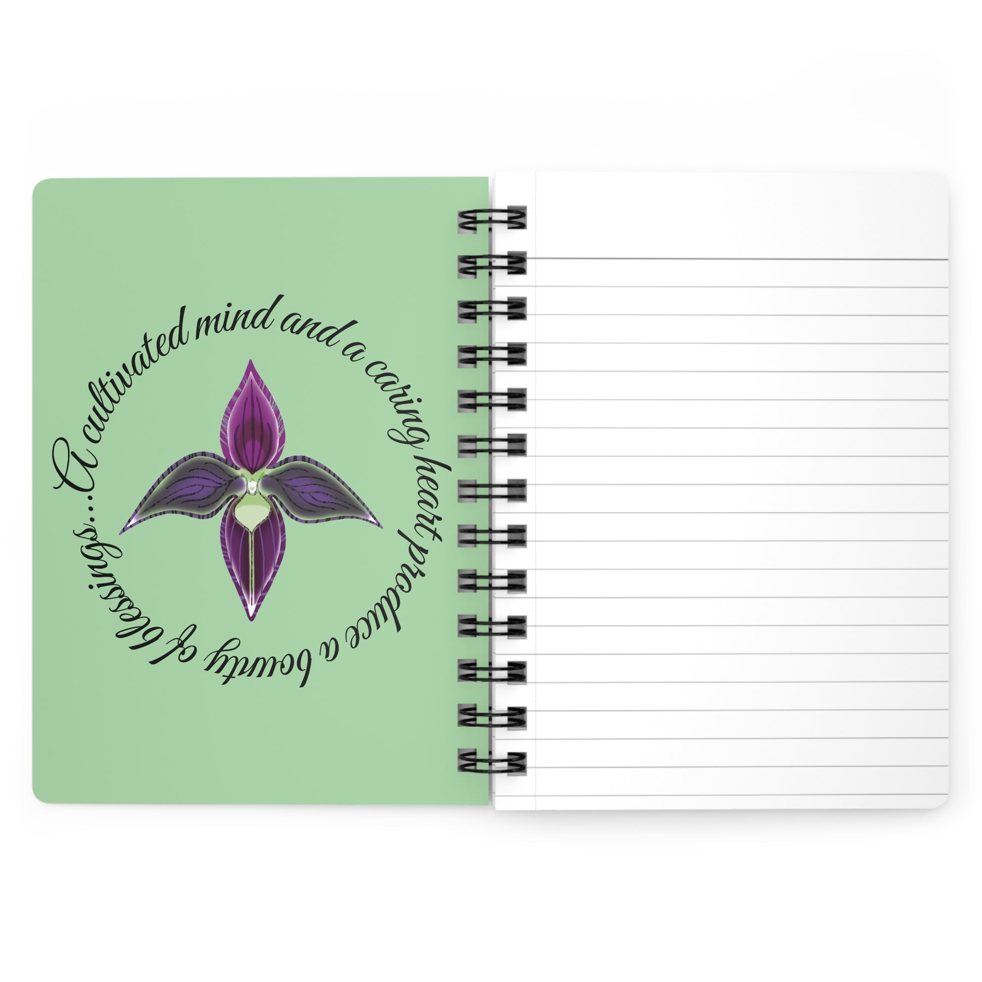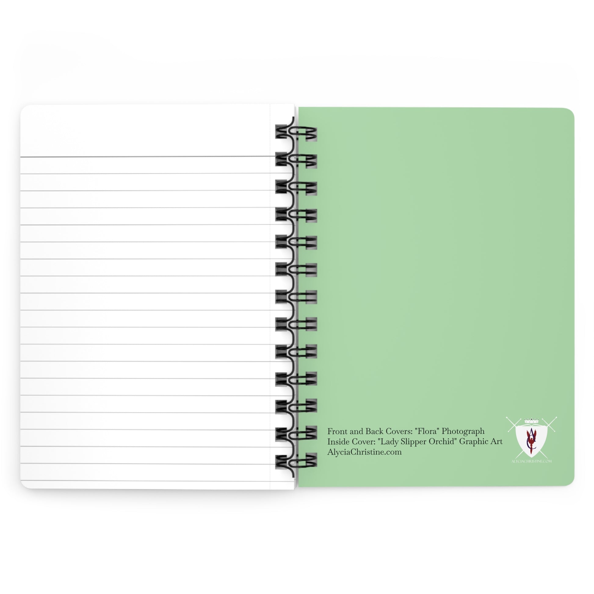 Write down your dreams and musings in style using this sturdy spiral-bound notebook. This special notebook features a thick gloss full-color laminated protective cover that is much more durable than the average flimsy paper covers. The journal comes in 5"x7" size with 150 pages of lined paper and features the "Flora", and "Lady Slipper Orchid" designs on its front, back, and inside covers.